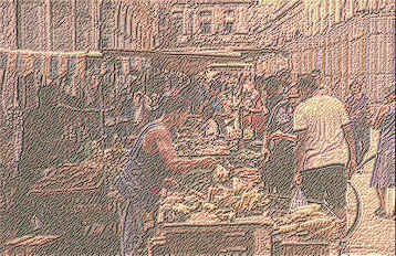Gejubel und Geschrei, als wir wieder zurück sind. So viele Küsse und Umarmungen auf einmal! Das Haus ist auf Hochglanz geputzt, Graciela und Tamara haben am Meer Muscheln für uns gesucht und Zoila hat zur Begrüßung süße Maisfladen gebraten. Inzwischen läuft schon wieder Musik, wenn auch noch nicht ganz so laut. "Aber am Samstag, bevor Ihr wegfahrt, feiern wir noch zusammen!" meint der mittlere Oswaldo, der Sohn des alten Oswaldo und Vater von Oswaldito. "Eine fiesta mit caldero (kubanische Spezialität), Rum und Tanz bis tief in die Nacht!" "Und ich tanze die ganze Nacht durch, auch wenn Ihr alle Schlafen geht!" schreit der fünf Jahre alte Raulito. "Ist ja schon gut, Raulito". Großmutter Zoila übernimmt wieder das Regiment. "Am Samstag Morgen könnt ihr mit Raissa oder mit Maria zum Markt in Santa Cruz fahren, wenn ihr Lust habt. Ihr haltet Euch dann etwas im Hintergrund und macht den Mund nicht auf, denn Touristen zahlen in Dollar. Aber wenn wir einkaufen gehen, bekommen wir alles in Pesos und dann kostet es viel weniger." Ein Dollar ist im Gegenwert 20 Pesos. Genau wie beim Transport gibt es auch beim Geld zwei voneinander getrennte Kategorien bzw. Welten. Die Touristen bewegen sich - ob sie wollen oder nicht - in der Dollarwelt. Die Kubaner dagegen leben in der Pesowelt bzw. in einer Übergangswelt, in der der Peso langsam aber sicher vom Dollar verdrängt wird. Der Überlebenskampf in dieser Übergangswelt ist hart. Es gibt zwar durch zunehmenden Tourismus inzwischen einige Möglichkeiten, an ein paar Dollar heranzukommen, doch werden diese von staatlicher Seite streng kontrolliert und außerdem besteuert. Bargeld bzw. Geld überhaupt ist überall rar. Sehr rar. Hier in El Fraile gehen viele Männer tagsüber zum Fischen und verkaufen oder tauschen abends ihren Fang bei Nachbarn. Z.B. einen Fisch gegen einen Haarschnitt. Oder Fisch gegen Benzin, Fisch gegen ein paar alte, aber noch einigermaßen gut erhaltene Schuhe, was eben jeder gerade hat bzw. brauchen kann. "Da kommt der Maisverkäufer", ruft Zoila. "Lasst uns Maiskolben kaufen, dann kann ich Euch schöne tamales machen am Samstag". Ein Pferdegespann mit einer Wagenladung voller Maiskolben fährt vors Haus. Für einen Dollar gibt es die unglaubliche Menge von achtzig Kolben, einen ganzen Sack voll.