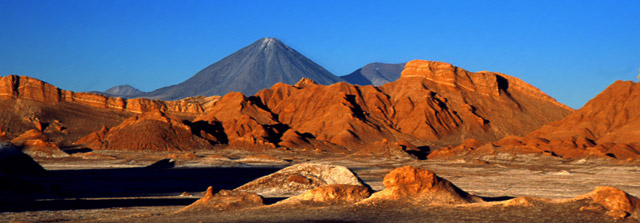 Licancabur am Rand der Atacama-Wüste, die viel fotografierten Zwillingsvulkane Pomerape und Parinacota im chilenischen Lauca-Nationalpark sowie der