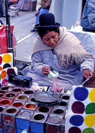 Interessanter noch als die eigentümlichen Waren sind jedoch deren Verkäuferinnen: die Indio-Frauen vom Stamme der Aymara, welche noch immer an ihrer