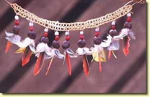 dort eine reiche Auswahl von Federschmuck und Ketten, Körben und